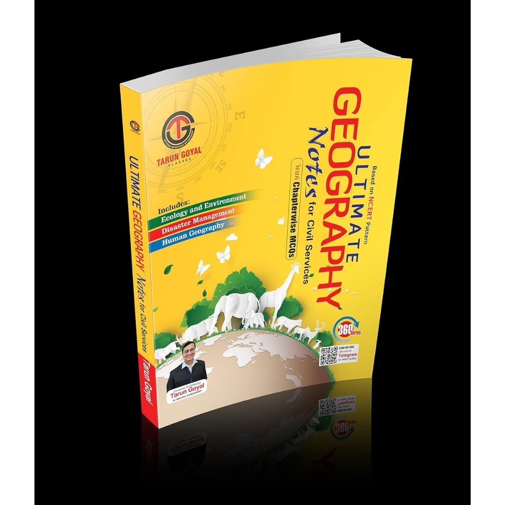 Ultimate Geography Notes for Civil Services (360° Series) is a specialized and exam-focused geography book compiled and edited by Tarun Goyal (Ex-Educator, Unacademy). Designed strictly on the NCERT pattern, this book provides in-depth yet easy-to-understand coverage of the most important geography topics required for Civil Services and other competitive examinations.
